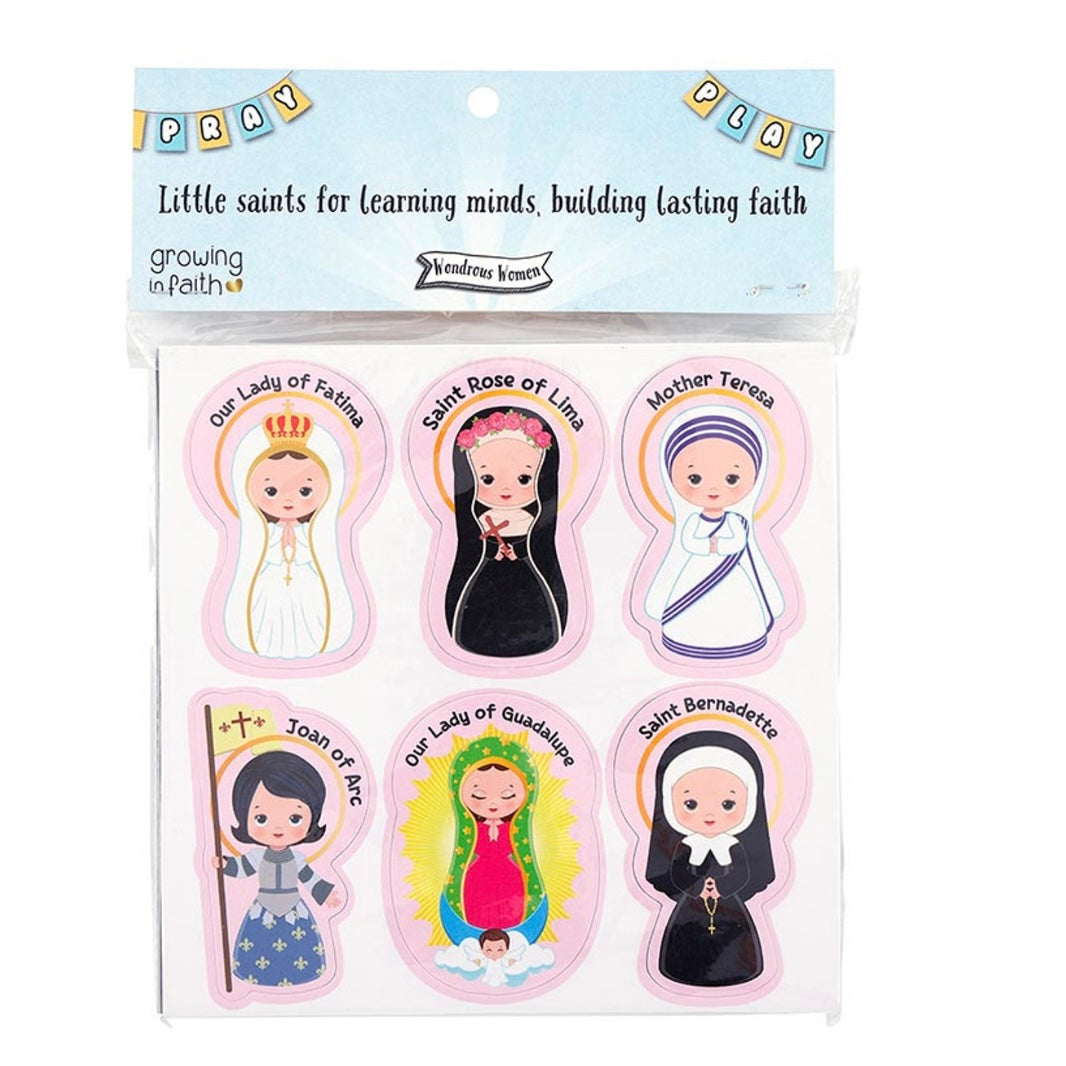 - Includes Saint Bernadette, Saint Dymphna, Saint Joan of Arc, Saint Josephine Bakhita, Saint Kateri Tekakwitha, Saint Katherine Drexel, Mother Teresa, Our Lady of Fatima, Our Lady of Grace, Our Lady of Guadalupe, Our Lady of Lourdes and Saint Rose of Lima